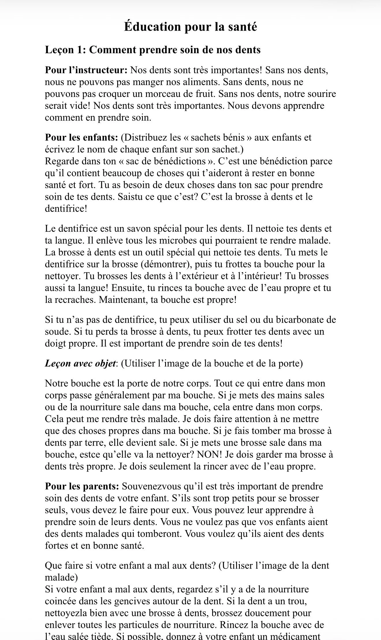 A simple health care manual designed to teach children and/or families basic health care practices
